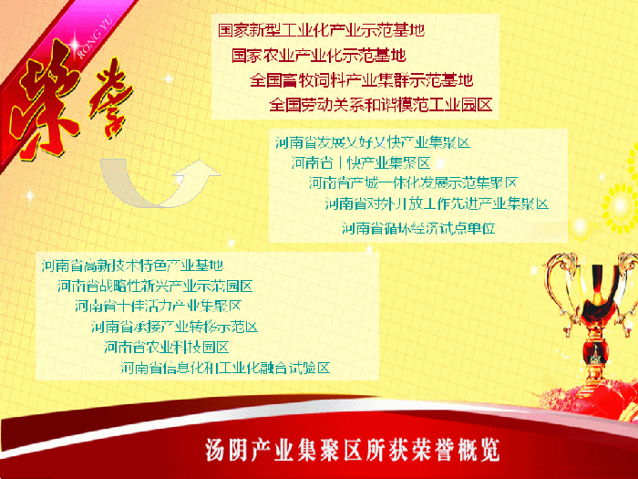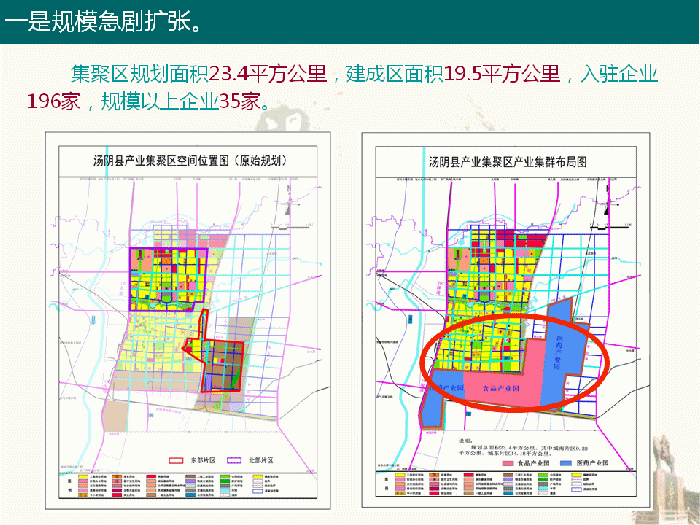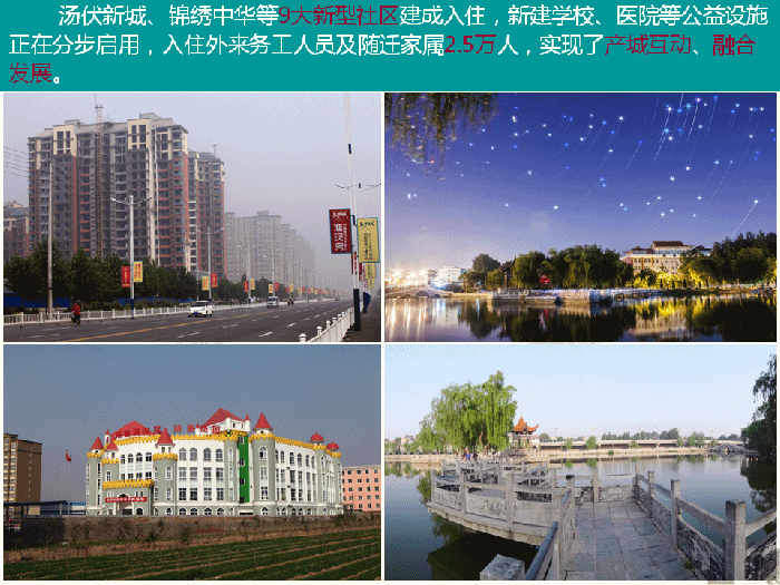 | 汤阴县产业集聚区位于汤阴县城东部和北部,集聚区规划面积17.2平方公里,其中,建成区6.7平方公里,发展区5.5平方公里,控制区5平方公里。食品加工、药品、机械制... |